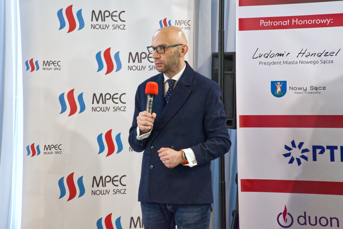 Uczestników powitał także prezes MPEC Nowy Sącz Paweł Kupczak, który życzył udanej konferencji i wielu ciekawych dyskusji. Jednocześnie zaprosił uczestników do wzięcia udziału w wizycie studyjnej na terenie Wysokosprawnej kogeneracji gazowej przy ulicy Lwowskiej, która została zaplanowana na piątek 2 lutego.